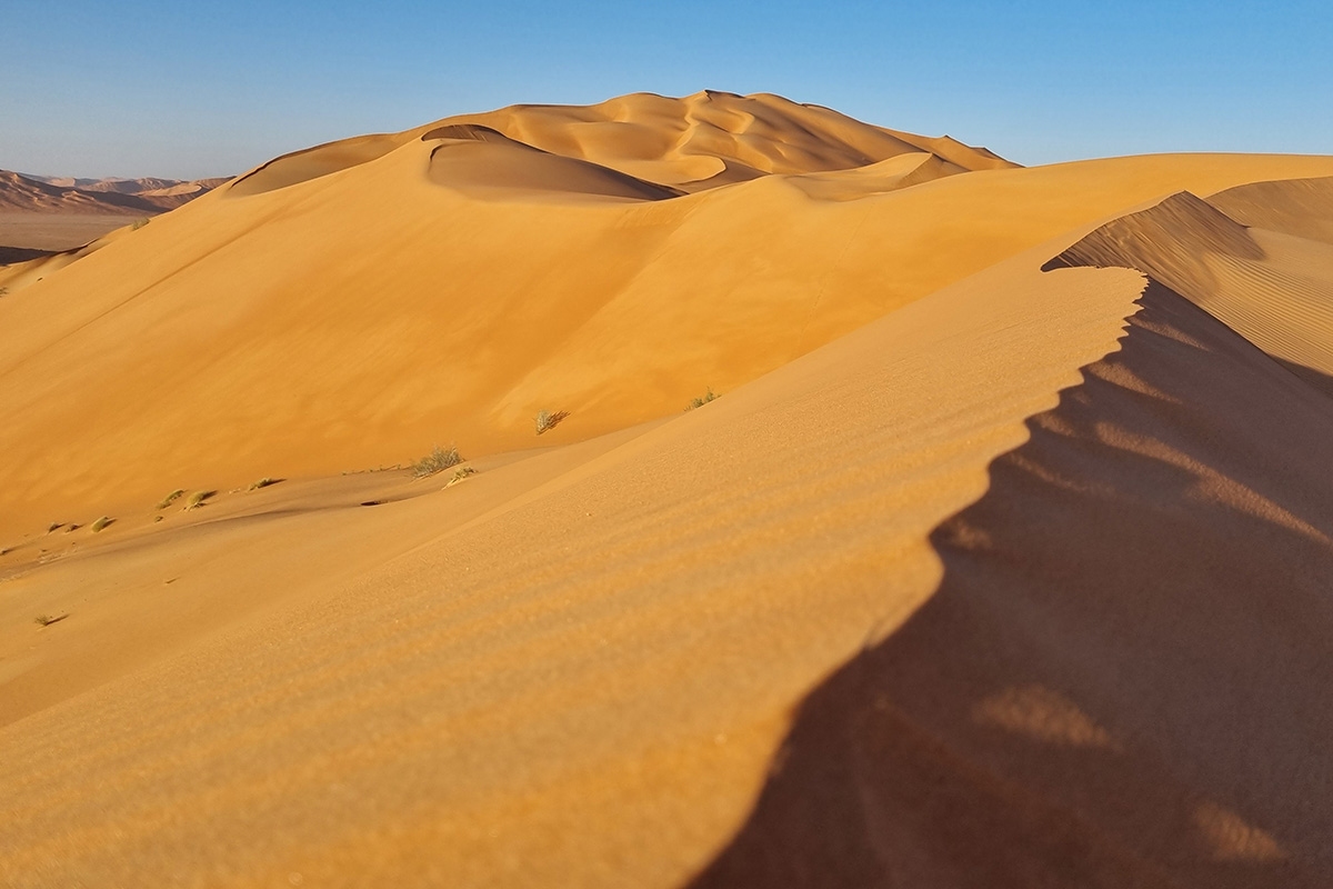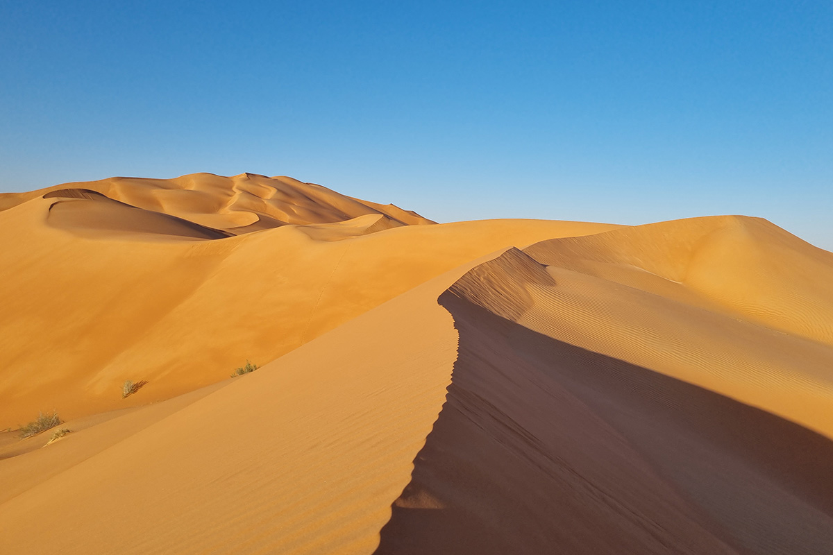 Je tiefer wir fahren, desto stiller wird es. Die Landschaft wechselt, bis schließlich die überwältigende Weite der Rub al-Chali vor dir liegt.